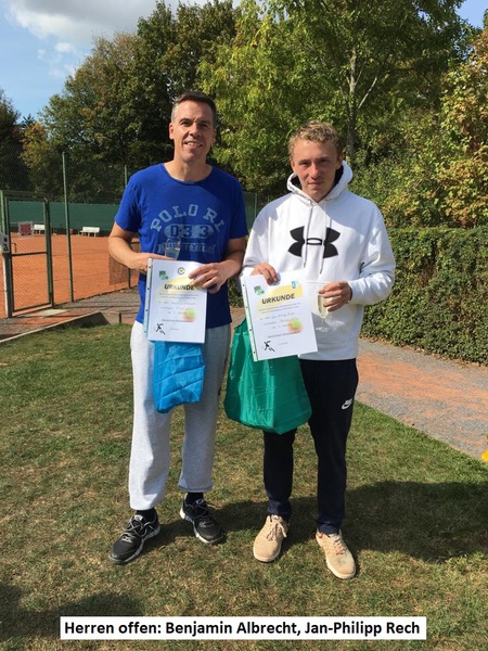 Am Ende konnten sich 4x Spieler/innen des CSV Marathon in die Siegerlisten eintragen: Anna Lempa bei den Damen offen, Christian Zoch bei den Herren 40, Jürgen Leffers in der Herren 40 Trostrunde und Karl-Heinz Nöding in der Herren 60 Trostrunde holten den Titel. Max Frieling bei den Herren 40, Volker Palm in der Herren 40 Trostrunde, Manfred Niegemann in der Herren 60 Trostrunde, Jaspers/Lommel im Damendoppel offen, Nöding/Schwinning im Herrendoppel 40 sowie Storb/Joosten im Mixed 50 hatten das Finale erreicht, unterlagen jedoch und wurden Vize-Clubmeister.