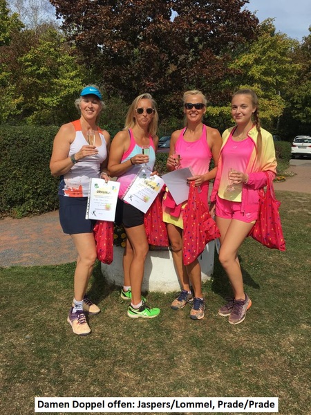 Die diesjährigen Clubmeisterschaften beim Tennis wurden zum dritten Male zusammen mit dem Hülser SV und GW St. Tönis durchgeführt. Um die 100 Spieler/innen nahmen teil, Mitte September fanden dann die Finalspiele auf unserer Anlage statt. Die Organisatoren Carmen March, Gunhild Heitkamp, Christel Manthey und Lucas Weißbeck hatten über den Sommer für einen reibungslosen Ablauf gesorgt und überreichten den Finalisten nach den Spielen jeweils kleine Geschenke.