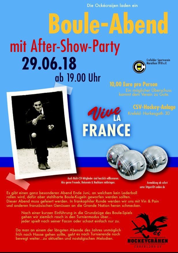 Um 20:00 Uhr treffen sich dann alle Teams sowie sicherlich viele Familienmitglieder der CSV Hockeyfamilie zur inzwischen legendären Players Night bei Andre im Tennisclubhaus am Horkesgath 16.