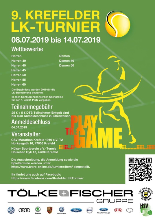 Beim Tennis geht die Medensaion in die Endphase, Anfang Juli wird sie beendet sein. Ein weiteres großes Highlight steht dann an: Zum 9. Male wird ein LK-Turnier bei uns auf der Anlage stattfinden - rund 160 Teilnehmer/innen werden mitmachen. Eine Anmeldung ist seit einer Woche über die Tennis-Webseite möglich (hier zum Link), zahlreiche Spieler/innen haben dies bereits genutzt ! Hier alle Info´s zum Turnier hier: