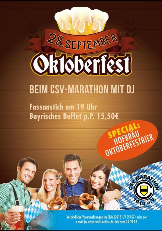 Am Samstag, den 28. Sept, feiert die Tennisabteilung im Clubhaus den Saisonabschluß mit einem Oktoberfest - alle Info´s hier auf dem Plakat. Natürlich sind auch die Mitglieder anderer Abteilungen und deren Freunde eingeladen !