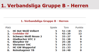 Nach einem guten Saisonstart haben die 1. Herren in der 2. Verbandsliga Gruppe B inzwischen die Tabellenführung ergattert ! Dabei gelangen an den letzten beiden Spieltagen Kantersiege mit einem 16:1 gegen Preußen Duisburg und einem 8:0 gegen den Moerser TV. Mit diesen Siegen rücken die Herren des CSV‘s wieder ein Stück näher an das Ziel Aufstieg - sie grüßen als Tabellenführer mit einem 6-Punkte-Vorsprung vor Raffelberg von der Tabellenspitze.