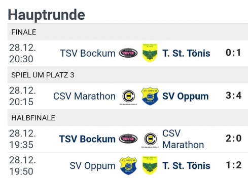 Diese Jahr trägt der CSV die Fußball-Hallenmeisterschaften aus - am 27/28ten Dezember stehen sich die Teams in der Glockenspitzhalle gegenüber. Ab Freitag, 17:00, wird gespielt ...