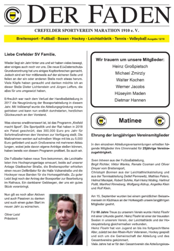 Der neue Faden ist da: Alle Abteilungen des CSV geben einen Überblick über ihre Aktivitäten im letzten Jahr.