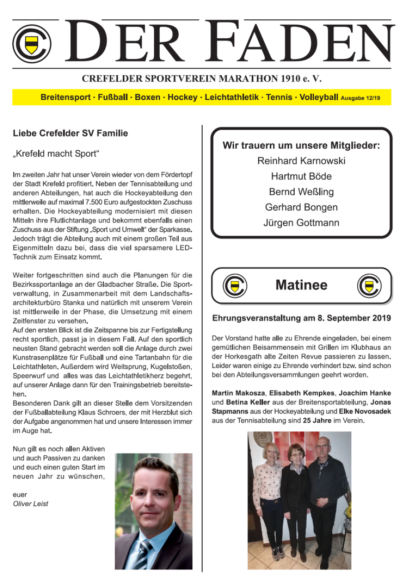 Der Faden 2019 ist da - mit Berichten aus allen Abteilungen ! Er kann hier heruntergeladen werden. Gedruckte Exemplare werden in den Abteilungen/Clubhaus ausgelegt werden.