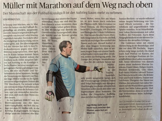 Die Fussballer stehen vor dem Aufstieg in die Kreisliga A - dazu veröffentlichte die Rheinische Post am gestrigen Samstag einen Bericht: