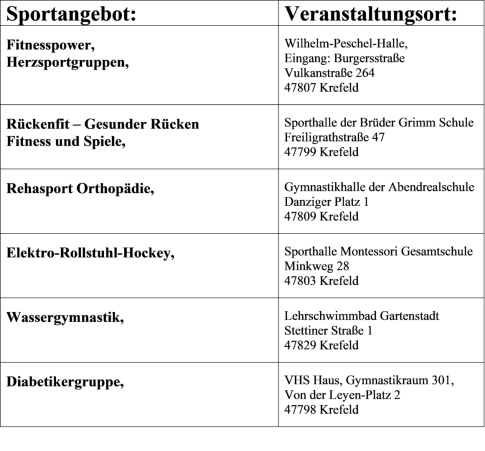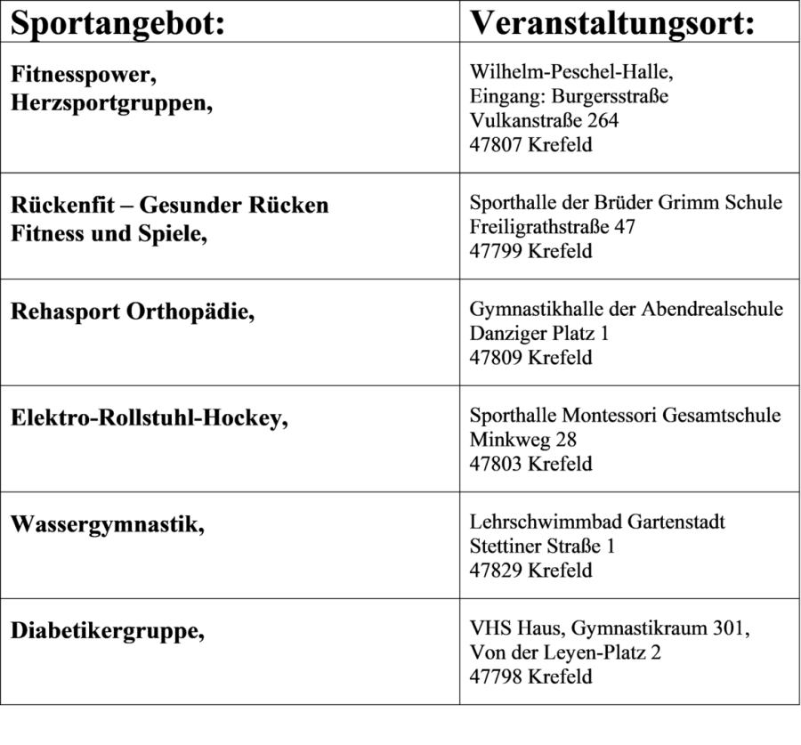 Diverse Sportstaetten, wo die Breitensportaktivitaeten stattfinden: